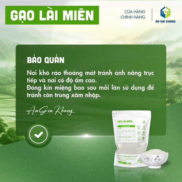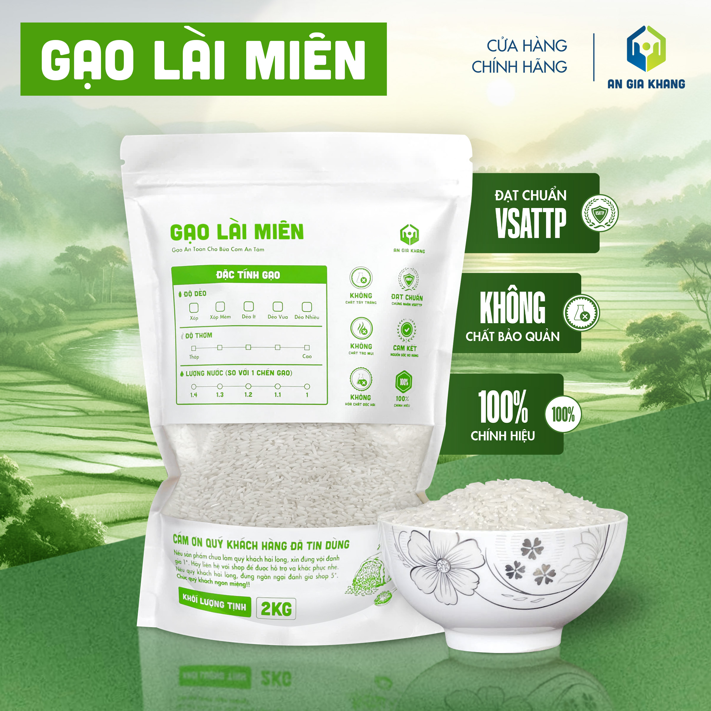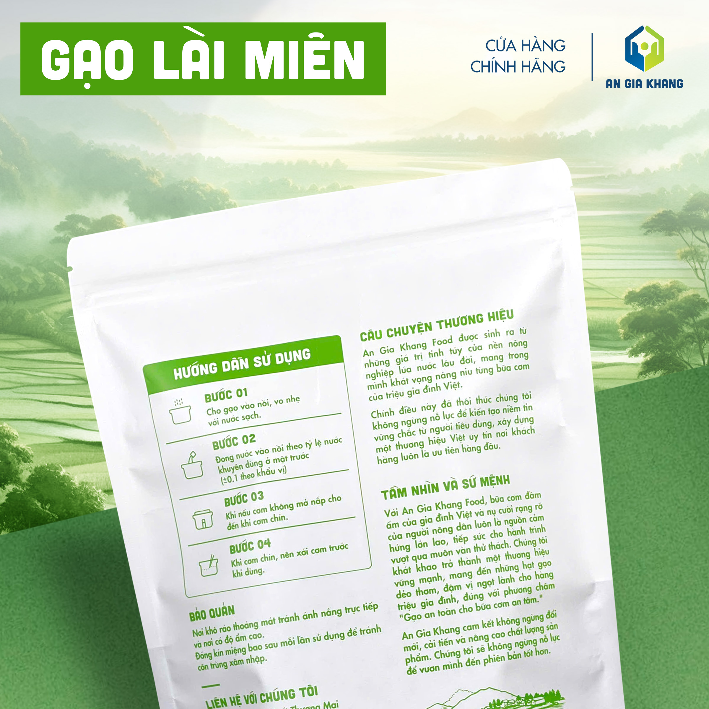 Gạo Lài Miên lúa mùa An Gia Khang được canh tác theo phương pháp tự nhiên, không hóa chất tạo mùi, không chất bảo quản. Mỗi hạt gạo mang theo vị ngọt lành của đất phù sa và sự cần mẫn của người nông dân – là món quà mộc mạc nhưng giàu giá trị cho bữa cơm Việt.