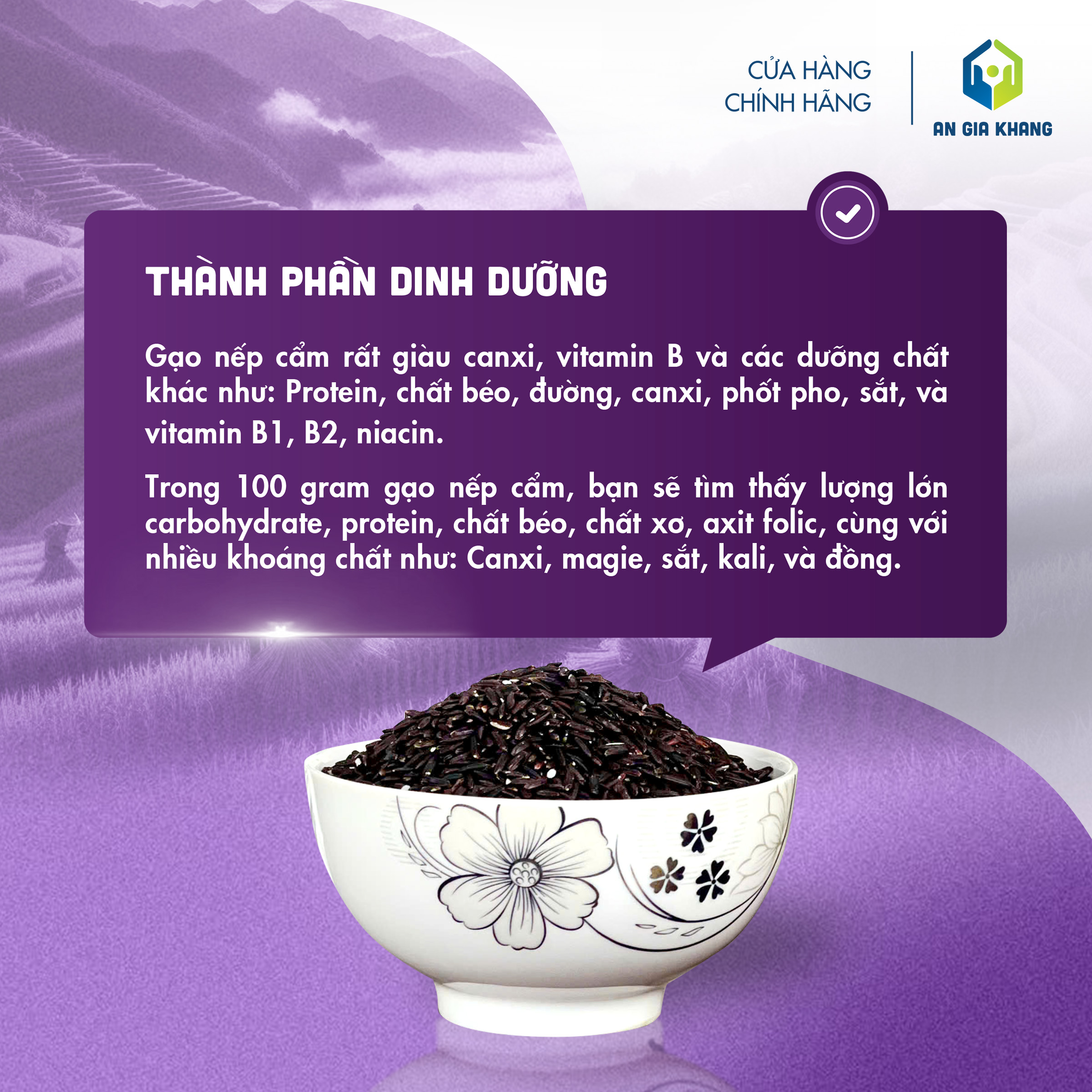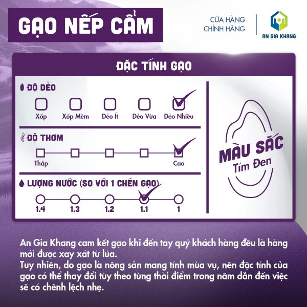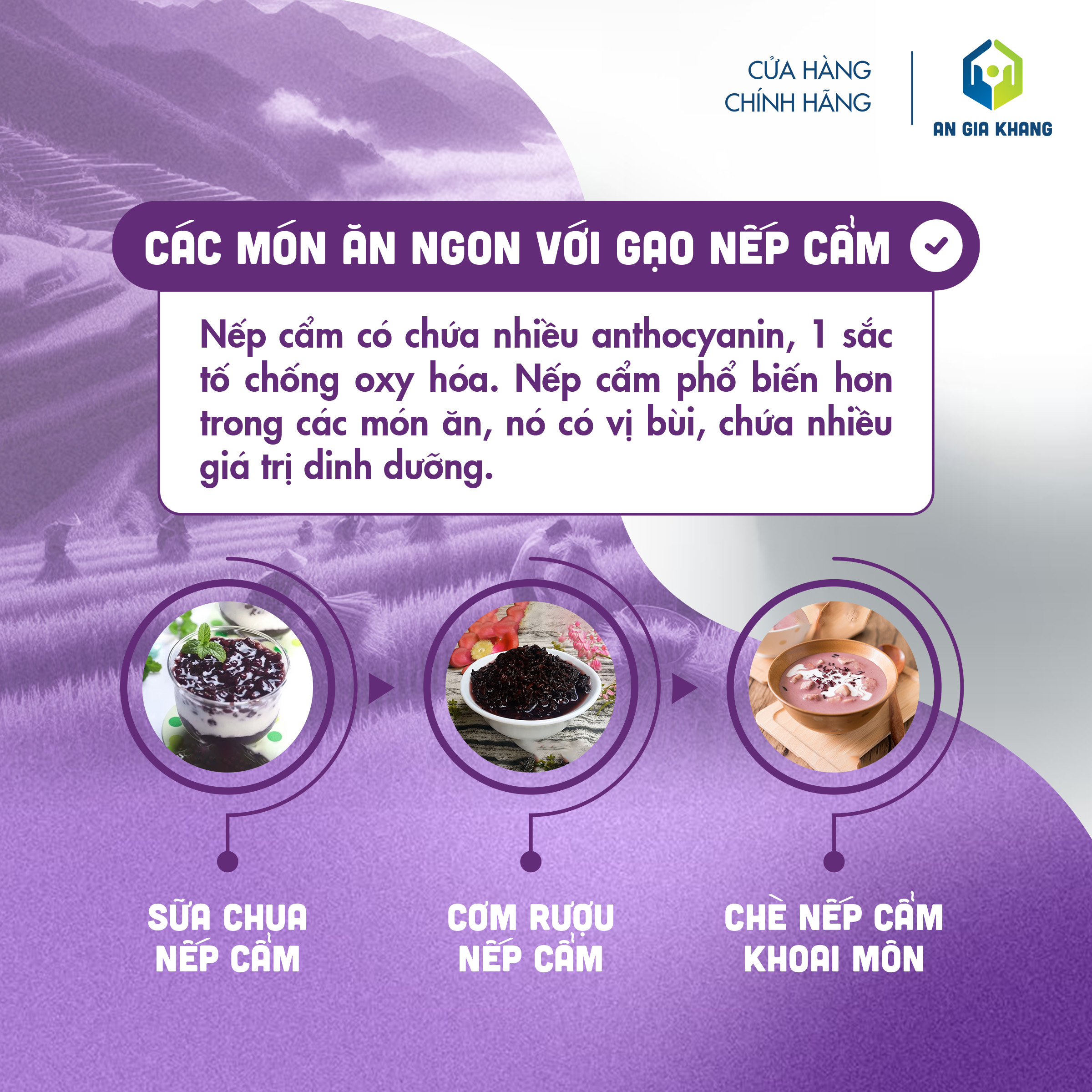 Gạo nếp cẩm AGKF mang đến hương vị dẻo thơm đặc trưng, là lựa chọn hoàn hảo cho các món ăn ngon miệng.