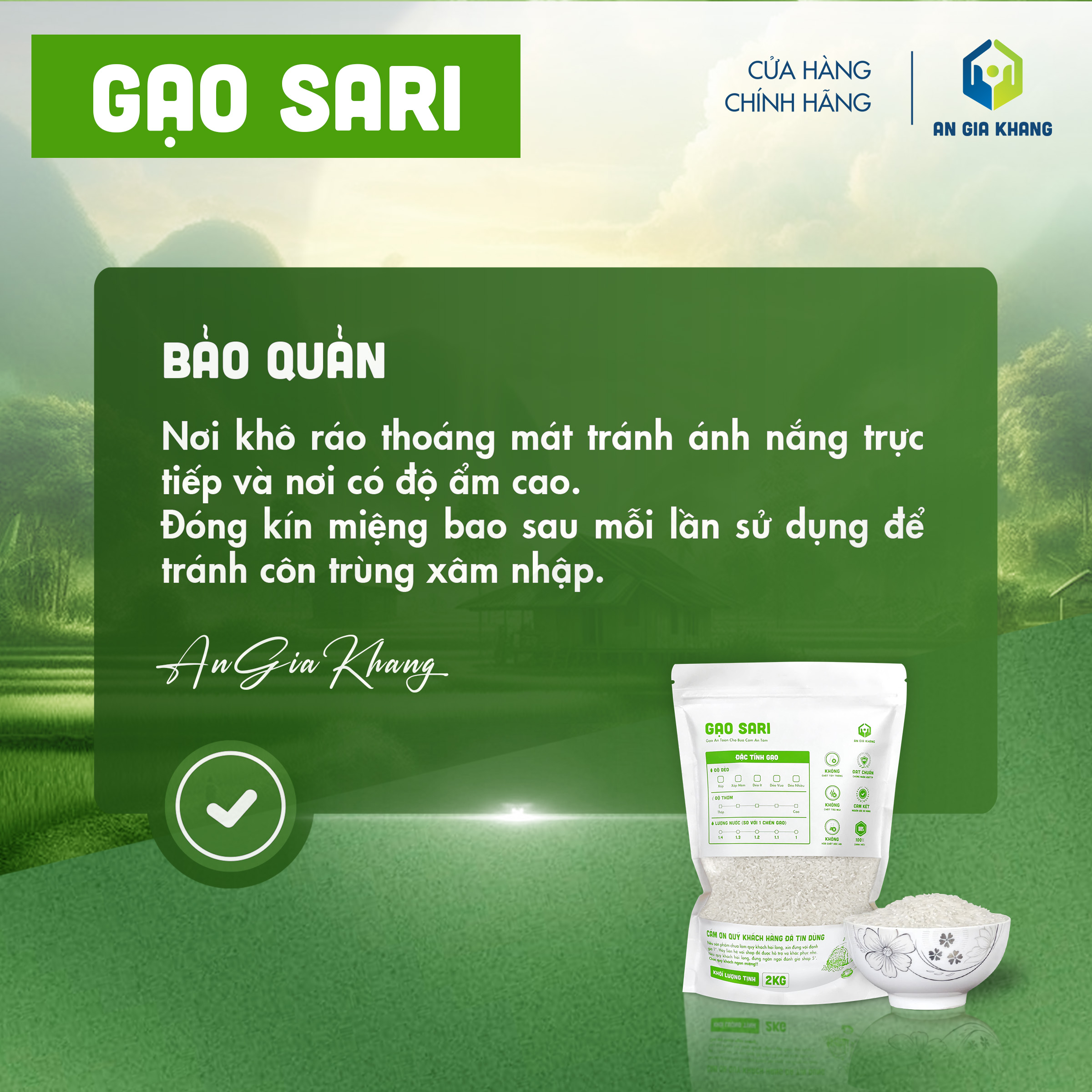 Được đóng gói kỹ lưỡng, bảo quản đúng tiêu chuẩn và không sử dụng chất tạo mùi, gạo Samo An Gia Khang đảm bảo an toàn, sạch gạo, cho bạn bữa cơm tròn vị và yên tâm mỗi ngày.