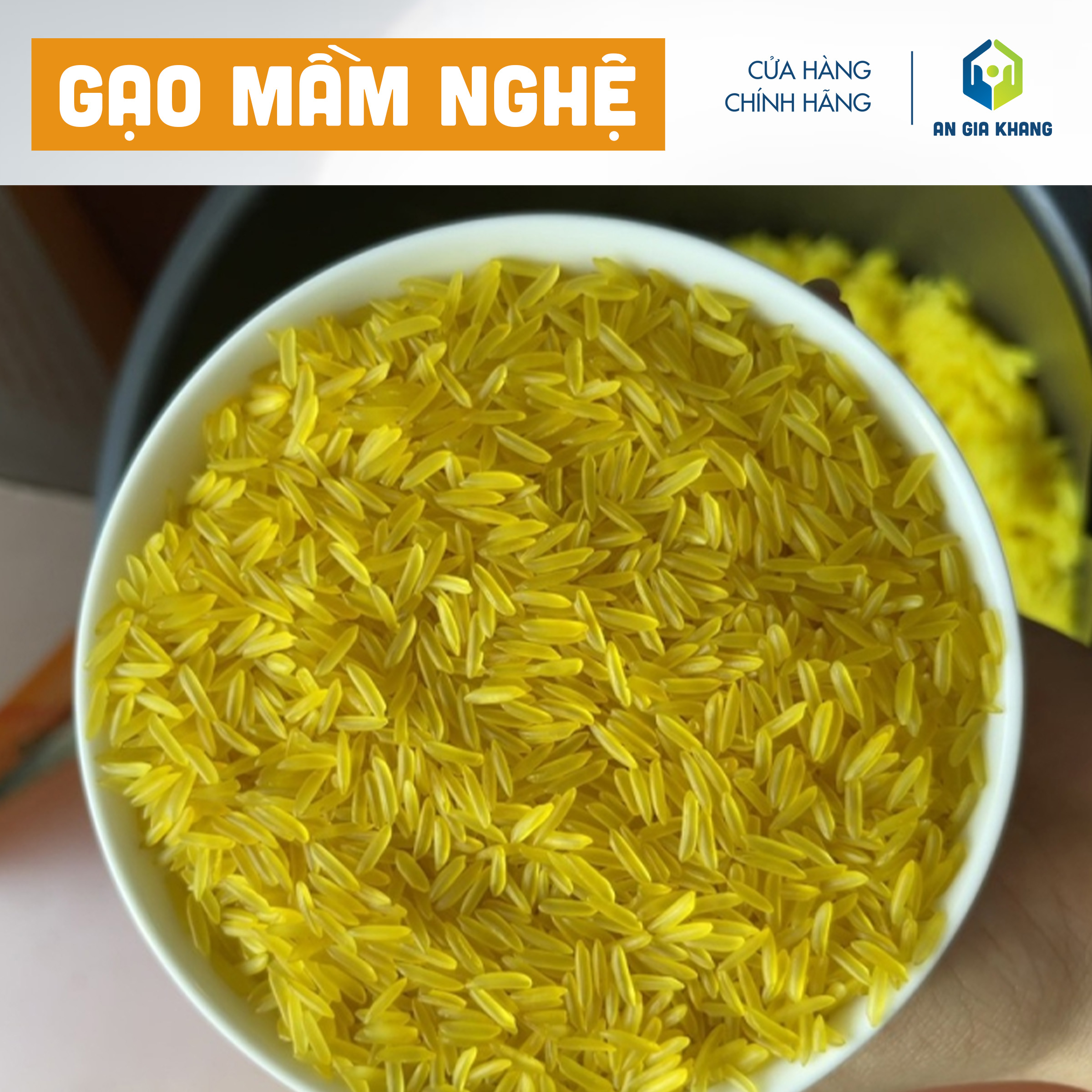 Hạt gạo có màu vàng óng tự nhiên nhờ nghệ, khi nấu lên cơm dẻo mềm, thơm nhẹ mùi nghệ, vị bùi béo, dễ ăn. Đây là loại gạo thích hợp cho người muốn ăn uống lành mạnh, hỗ trợ thanh lọc cơ thể, làm đẹp da, giảm cholesterol và tăng cường sức khỏe gan.