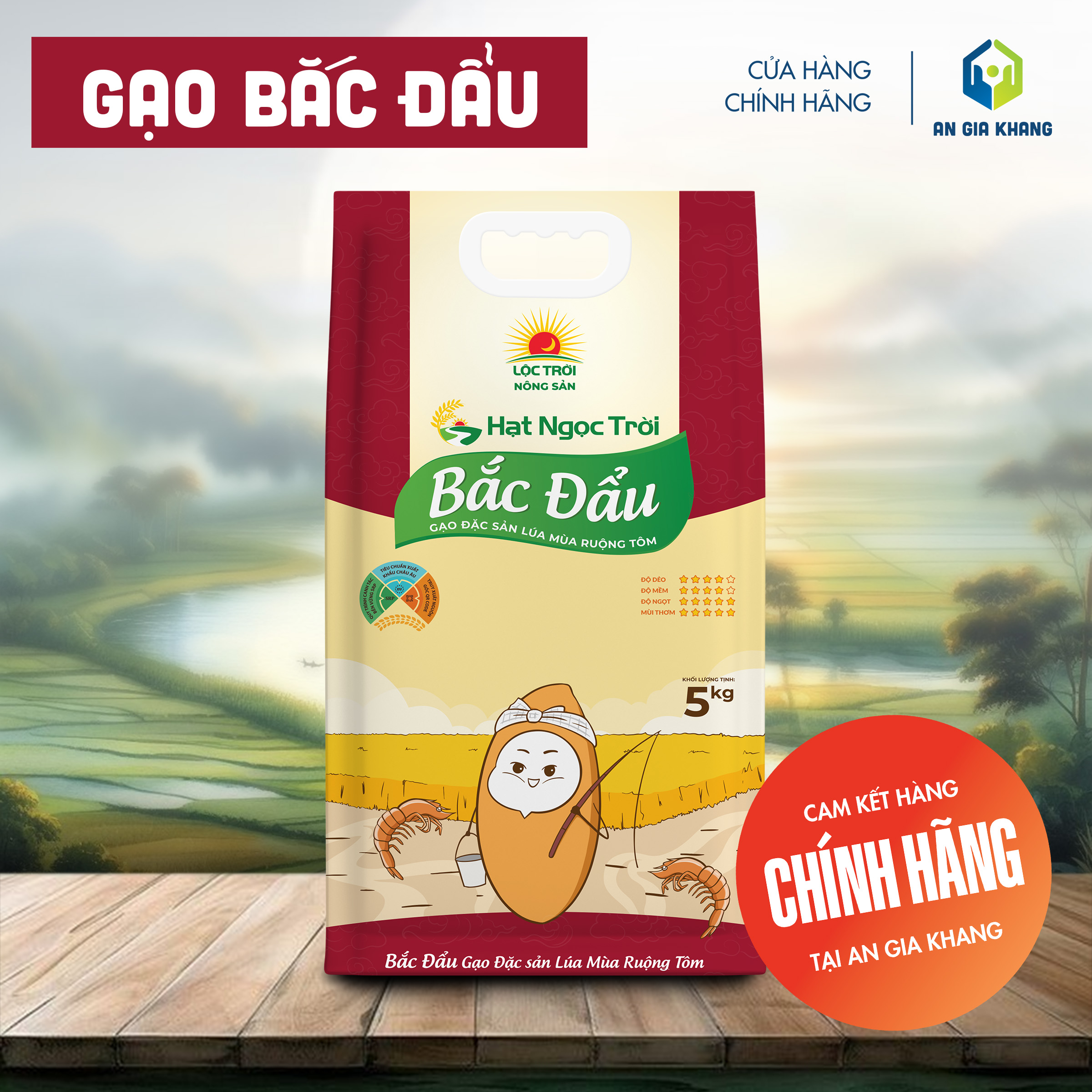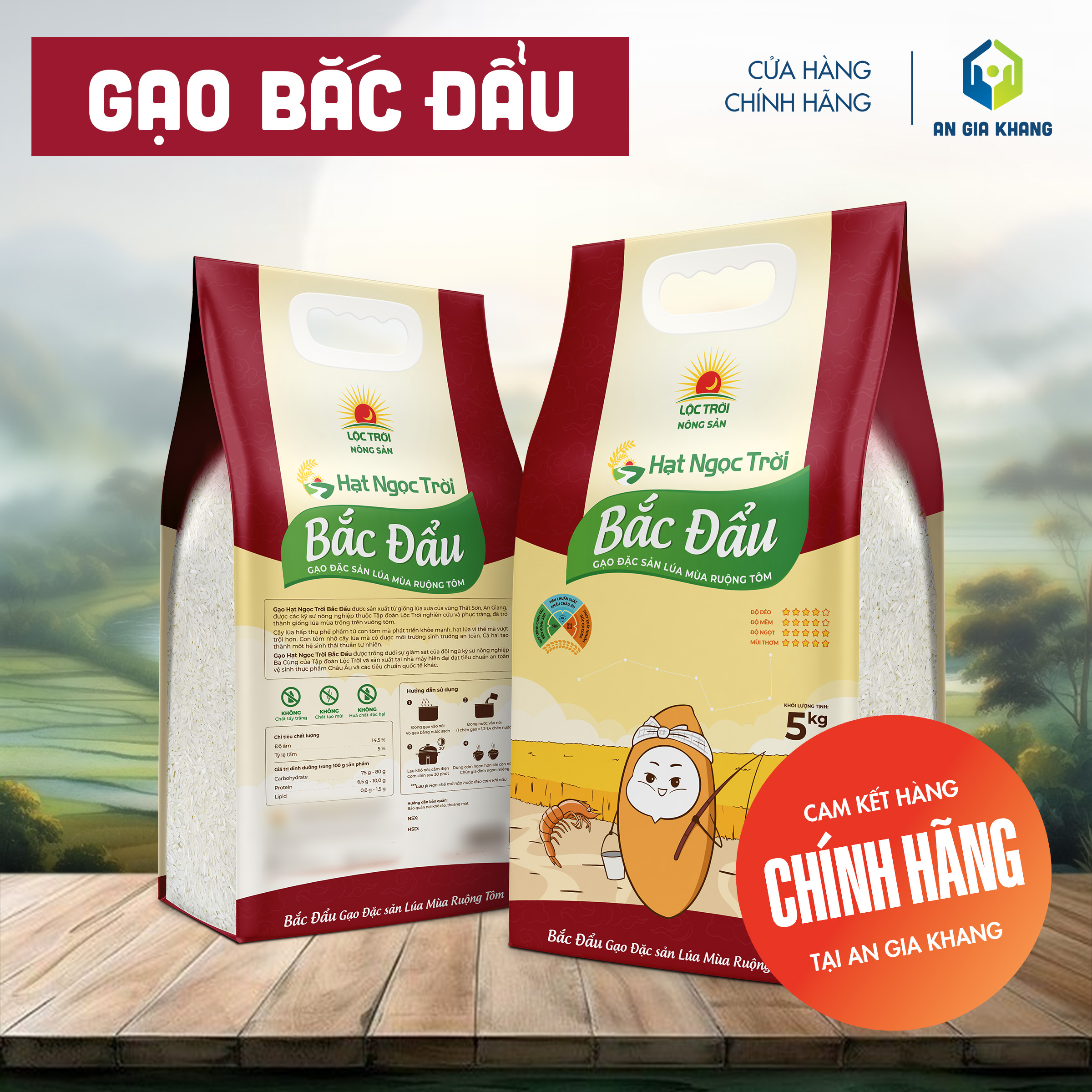 Gạo Bắc Đẩu An Gia Khang là dòng gạo thơm dẻo đặc trưng, nổi bật với hạt gạo thon dài, trắng trong và đều hạt, được chọn lọc từ những cánh đồng đạt chuẩn chất lượng.