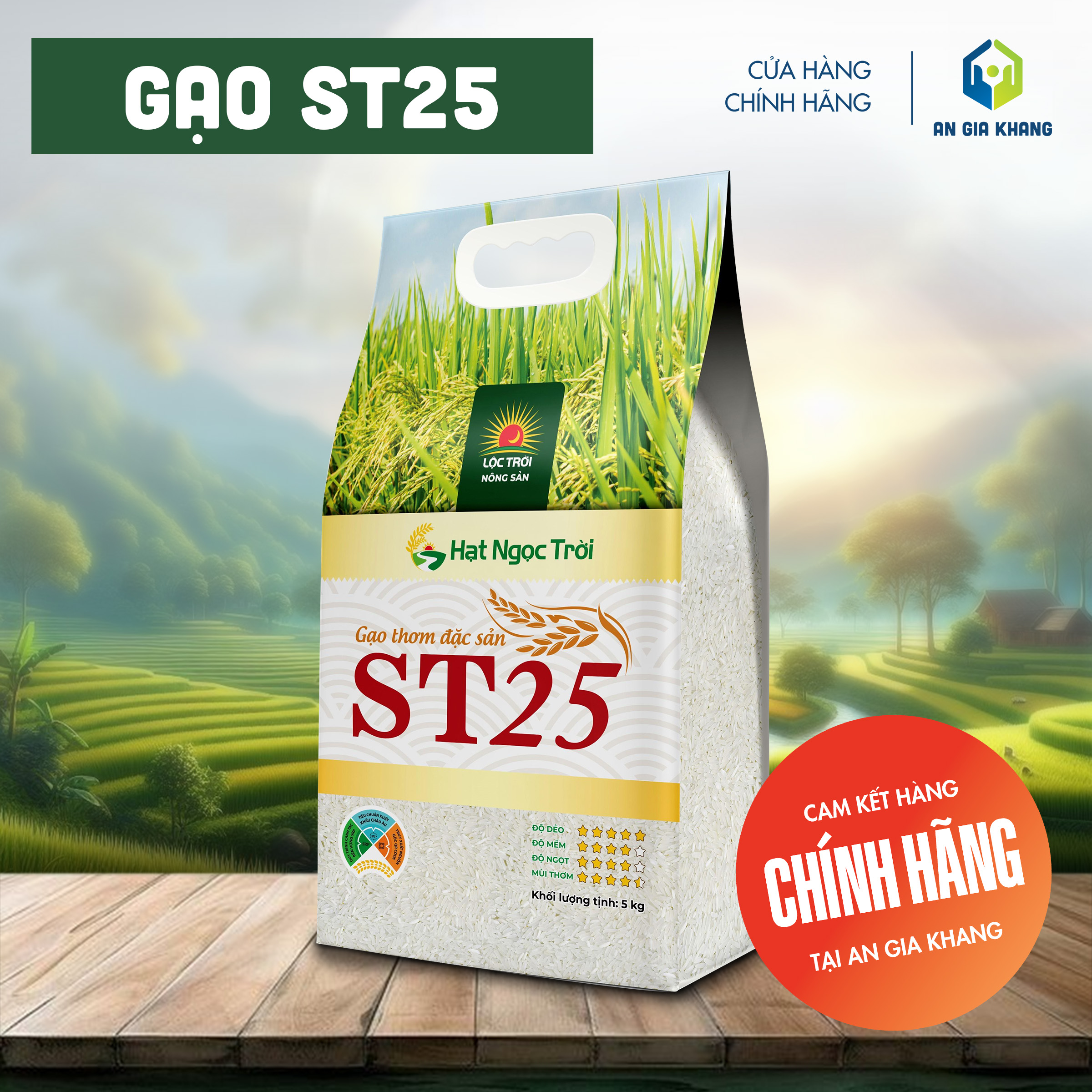 Gạo ST25 Hạt Ngọc Trời là dòng gạo thượng hạng được sản xuất từ giống lúa ST25 trứ danh – từng đạt giải “Gạo ngon nhất thế giới 2019”. Hạt gạo dài, trắng trong, thon đẹp, ít bạc bụng, mang hương thơm tự nhiên thoảng mùi lá dứa đặc trưng.