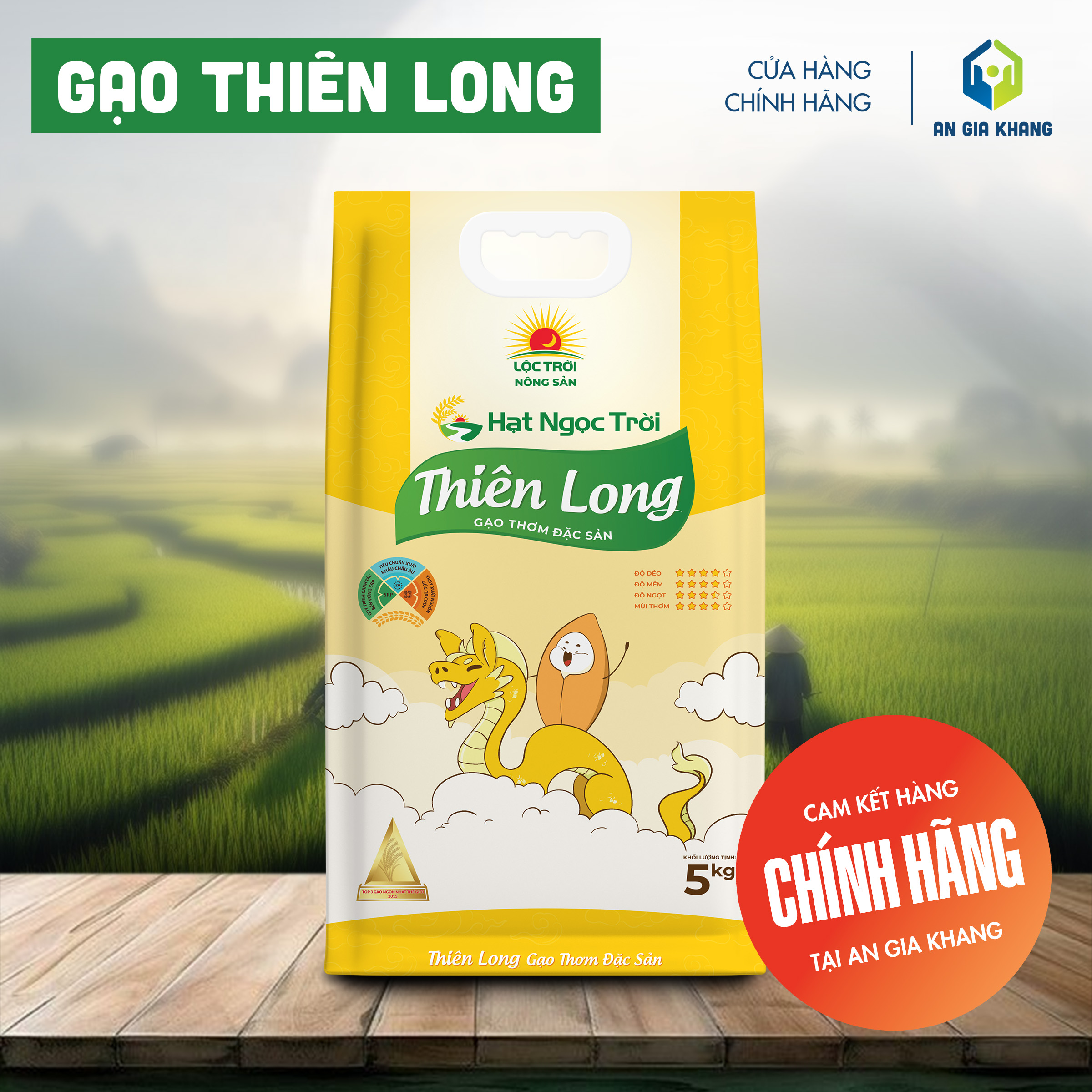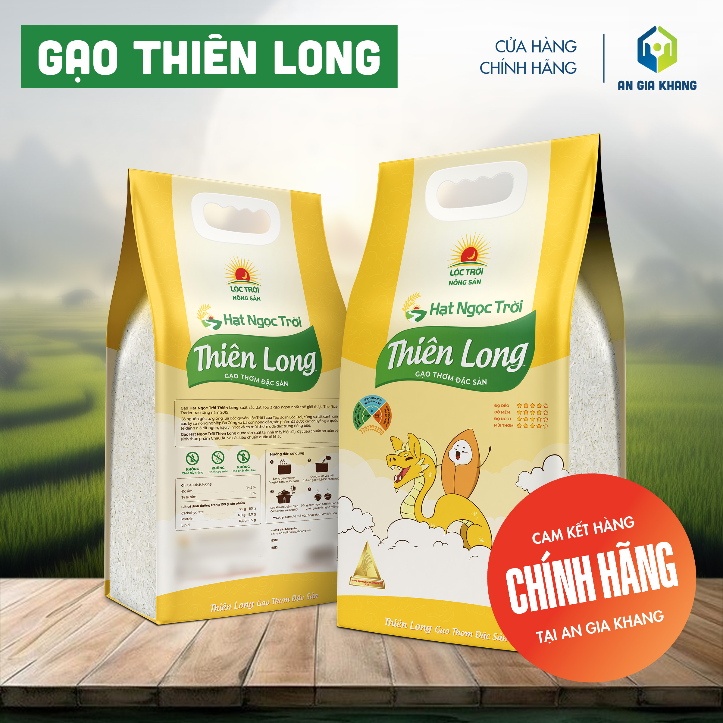 Được canh tác theo quy trình sạch, không sử dụng chất tẩy trắng hay tạo mùi, gạo RVT An Gia Khang là lựa chọn an toàn và thơm ngon cho những ai yêu thích dòng gạo thơm dẻo tự nhiên.
